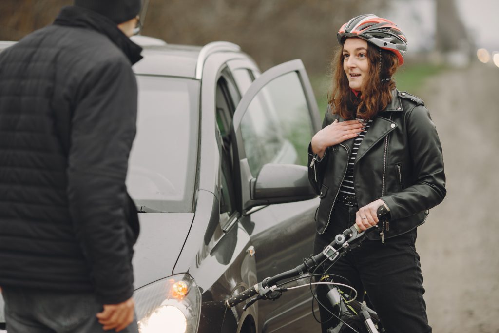 - Sie stoßen beim Radfahren versehentlich eine Fußgänger:in um